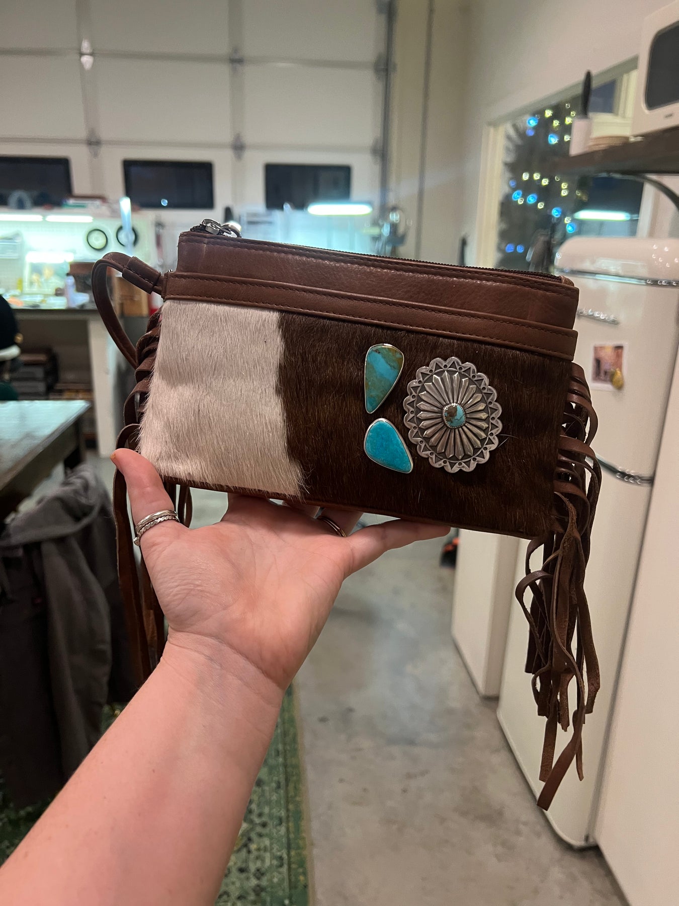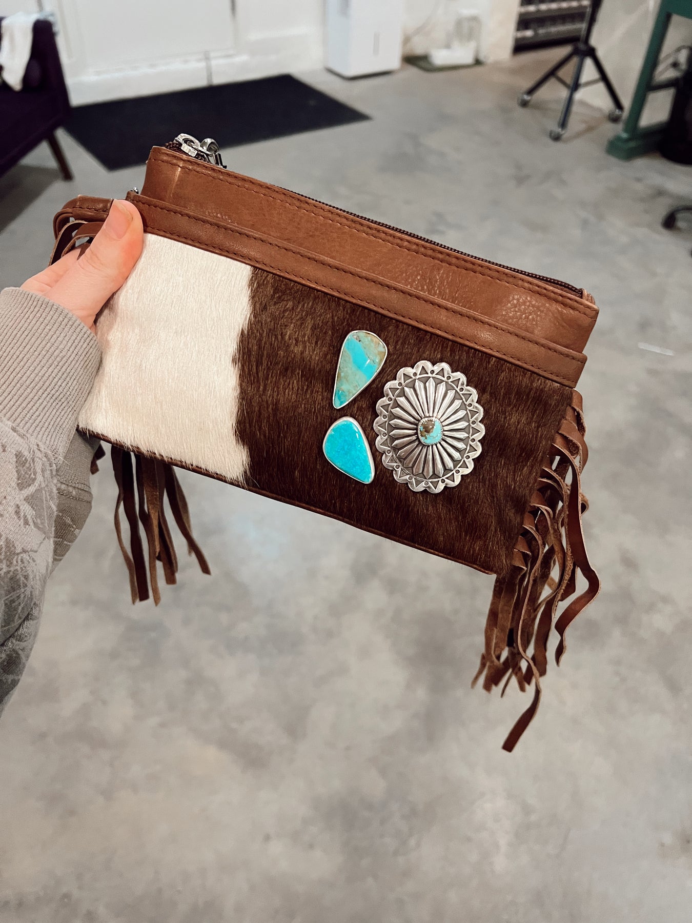 ‘Coyote Creek’ Kingman + Cowhide Wristlet // One of a Kind