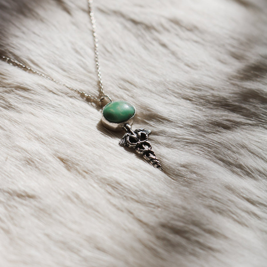 Caduceus Necklace in American Turquoise // One of a Kind