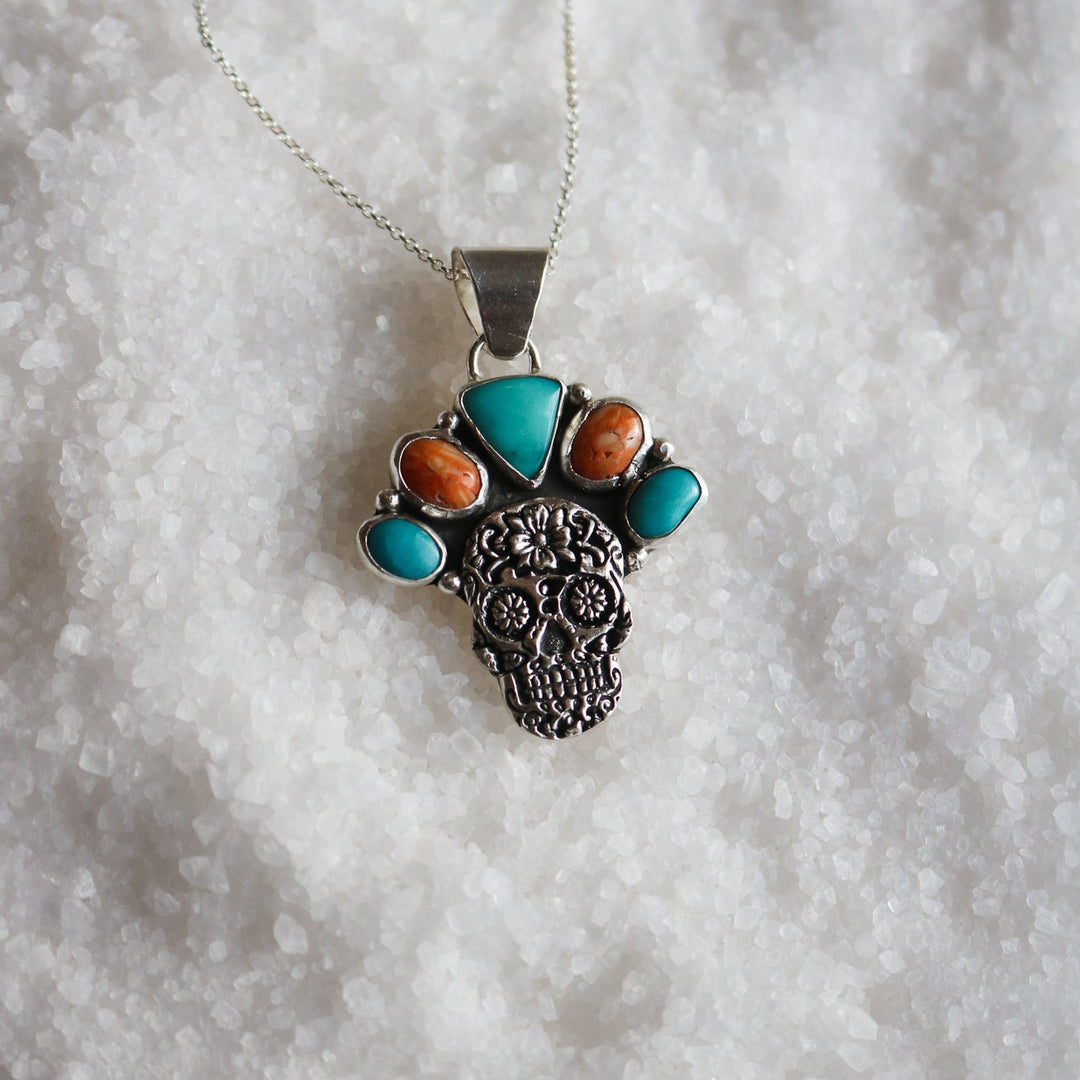 Sugar Skull + Stone Crown Necklace // One of a Kind