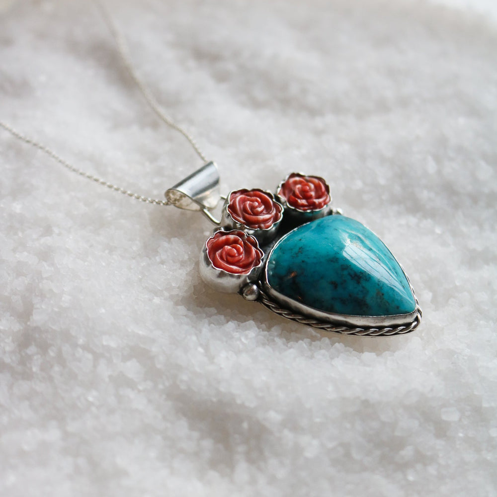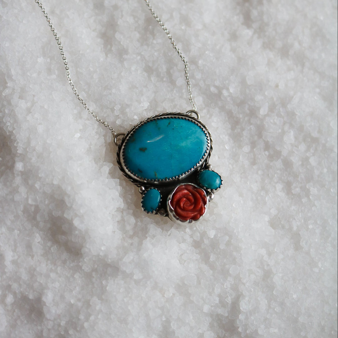 Kingman Turquoise + Spiny Rose Necklace // One of a Kind