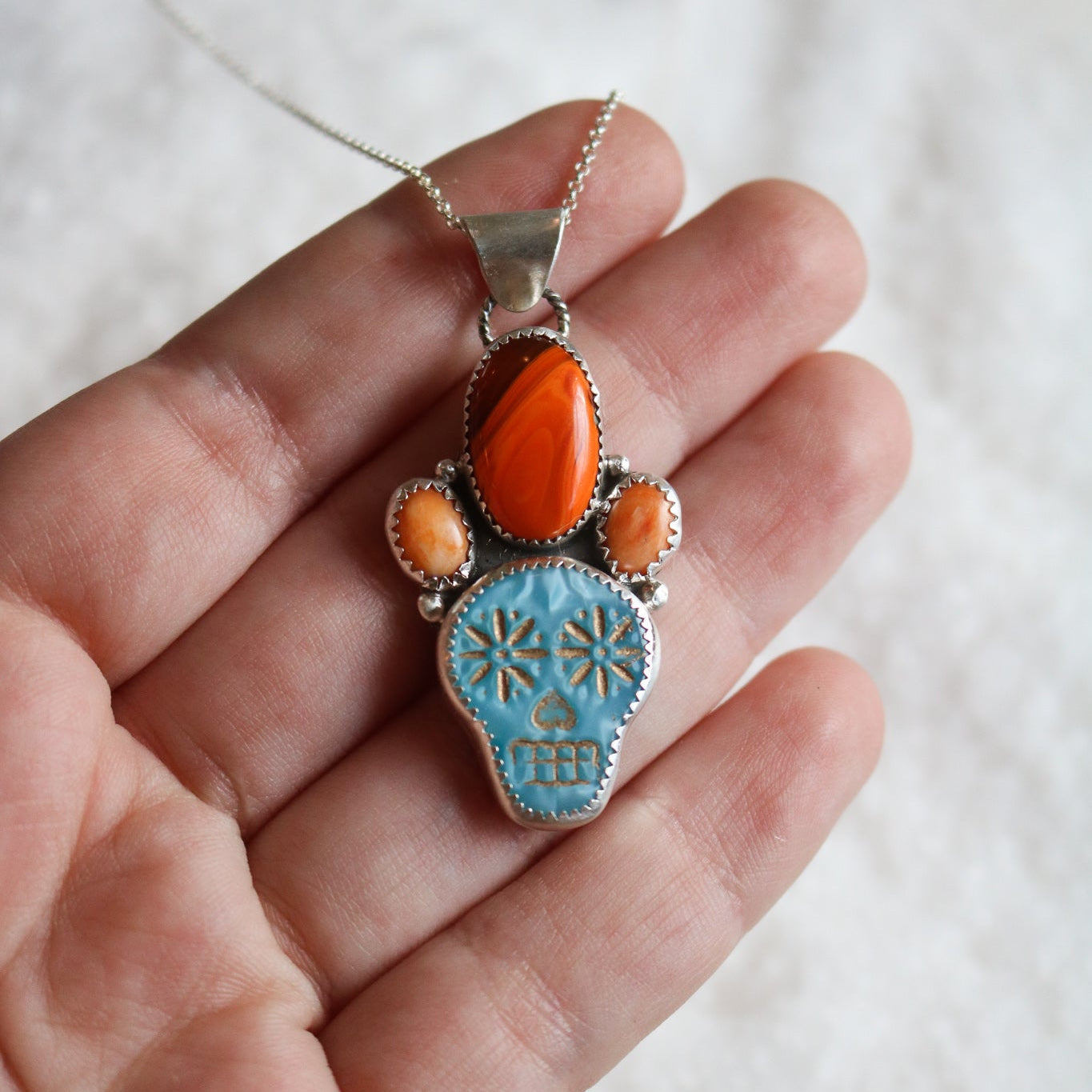 Sugar Skull + Pumpkin Spice Necklace // One of a Kind