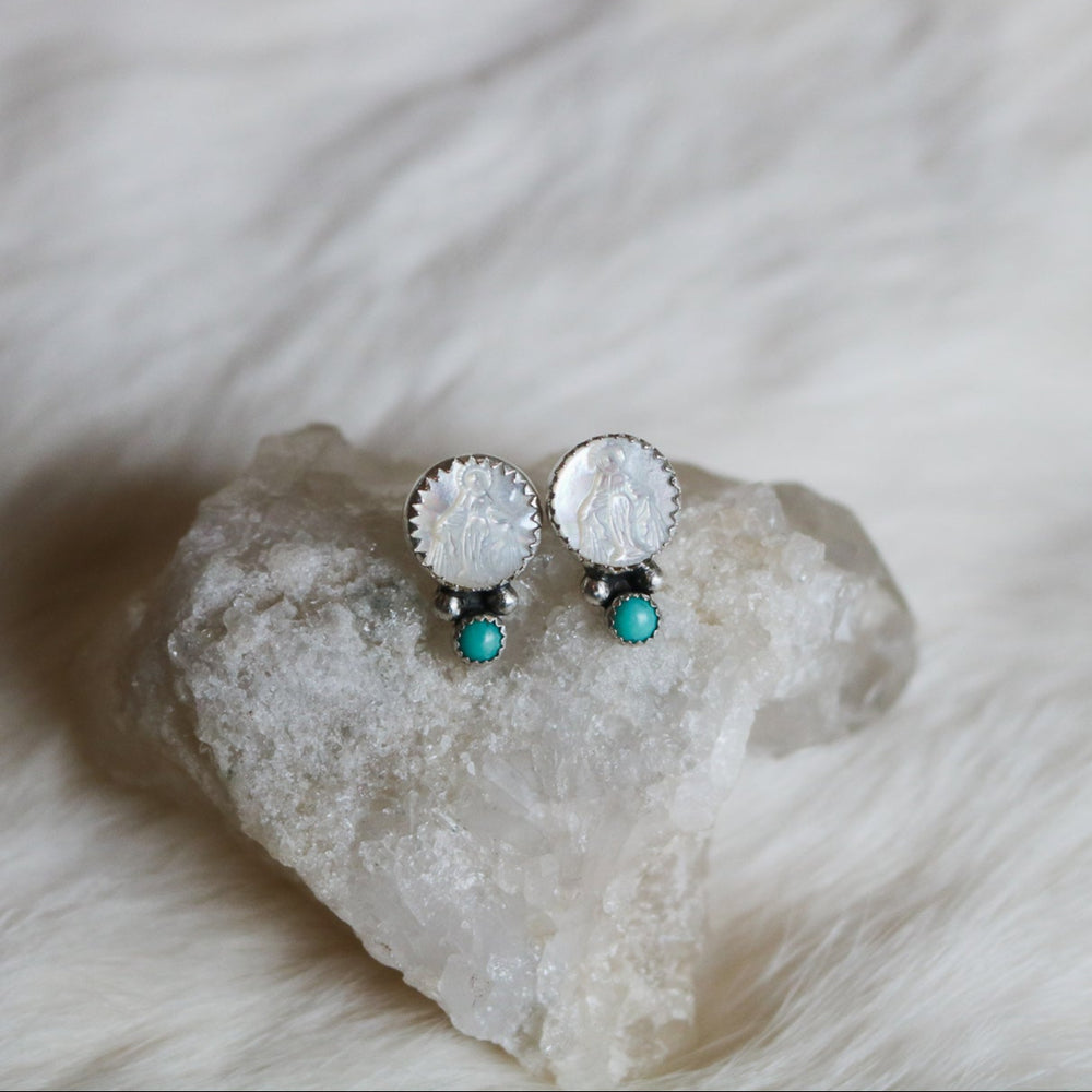 Heather Pink Conch + Turquoise Studs // Made to Order