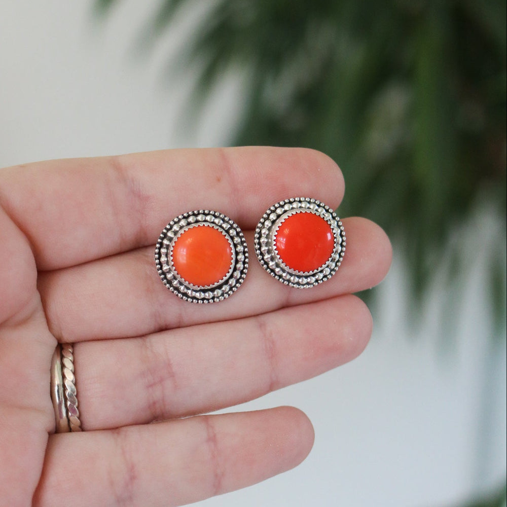 Orange Sugar Skull + Turquoise Ring - Size 8 // One of a Kind